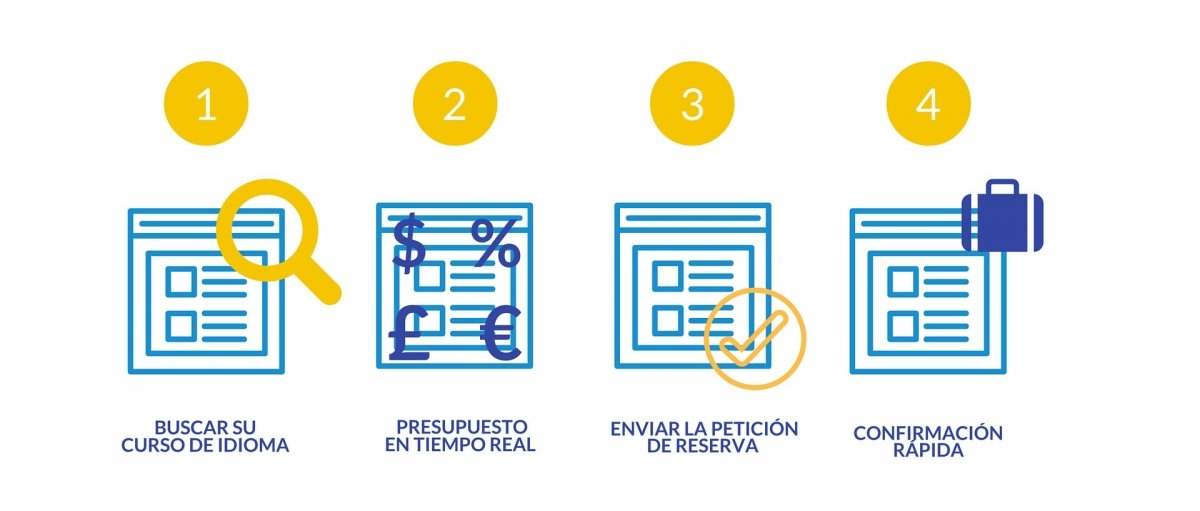 ¡Utilizar la plataforma de LINGUAGO para reservar tu curso de idiomas no puede ser más fácil! Con pasos sencillos para planear al viaje lenguaje tus los sueños, una nueva aventura está a la vuelta de la esquina. He aquí una guía paso a paso para reservar un curso: